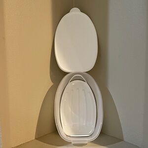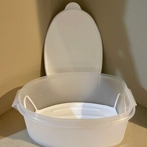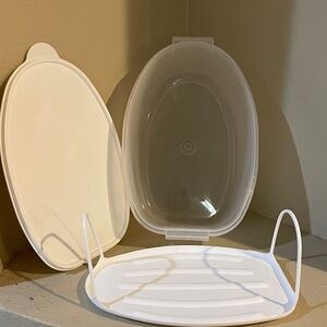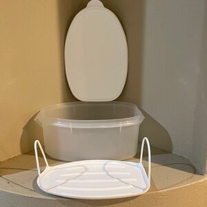 New. Unused. Tupperware. White & Clear. 3 piece Flavor Saver Large Container. This is a 3 piece set. All brand new. Never been used. Part of my massive Vintage Tupperware Collection..