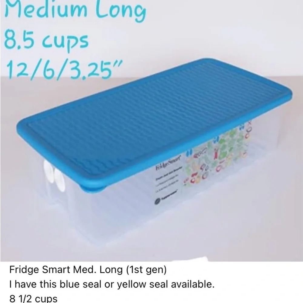 Efficiently store food with Tupperware's Fridge Smart container. Your choice of Yellow or Blue lid for a secure seal. Keep your produce fresher for longer.