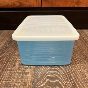Tupperware Fridgesmart Medium Blue Vented Container. Measures 8 x 5 x 3. Great used condition. No major flaws, very clean, odor free, and seals completely. Please see photos.