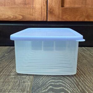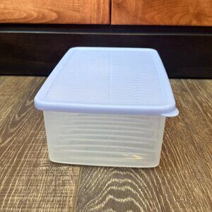 Tupperware Fridgesmart Medium Vented Container. Sheer container with light purple lid. Great for produce. Measures 8 x 5 x 3. Excellent used condition. No major flaws, very clean, odor free, and seals completely. Please see photos.