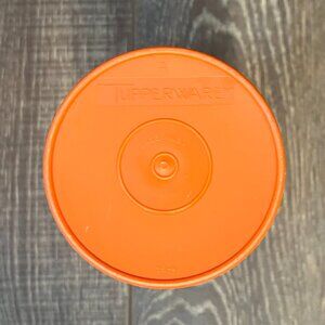 Tupperware Juice Container with Lid. Container is orange with a sheer lid. Measures 8 ½” tall and 4 ½” across. Bottom is number 261-4, the lid is number 563-3 and tab is 564-6. Has some scratches as this is a vintage piece but overall in good used condition. No major flaws, very clean, odor free, and seals completely. Please see photos.