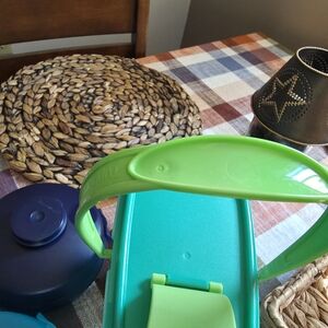 Enhance your kitchen organization with this vibrant teal and blue storage set. Also with a set of coral salt and pepper shakers.Never been used, but one of the container is missing the little cup.Perfect for keeping your food fresh and your space stylish. Comes from a smoke free home.
