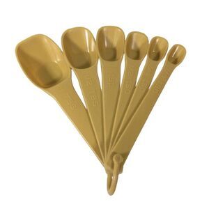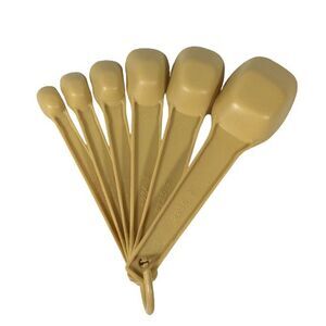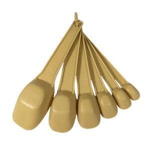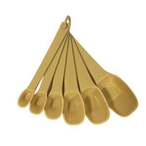 Tupperware Nesting Measuring Spoons Set of 6 with D Ring Yellow/Gold Vintage Retro. 2231, 2232, 2233, 2234, 2235, 2236. Brand New NOS. Please see pictures.