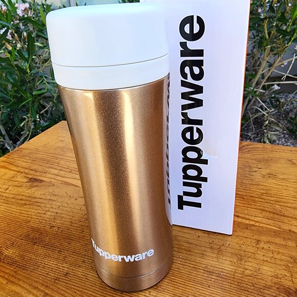 Tupperware Metallic OTG Travel Insulated Thermal Gold Flask Tumbler 14oz NIB