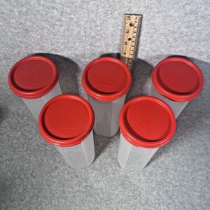 * Bright red snap-tight lids marked with Tupperware logo and model number 1607-16