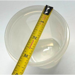 Container and lid are in good used condition with typical light scratches and marks. Measures about 4.5" tall. Holds 15 ounces (440 ml).