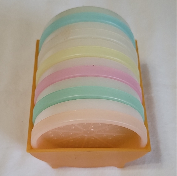 Vintage Tupperware coasters.