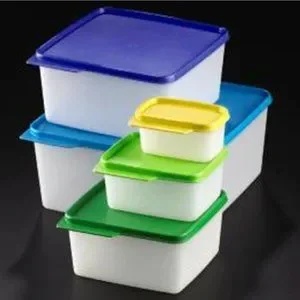 Easily open SQUARE SEALS with large, spill-proof tabs in Sunny Egg Yellow, Lime Green, Wintergreen, Lupine, and Cool Aqua with Natural / Sheer Square Base Keepers / Containers