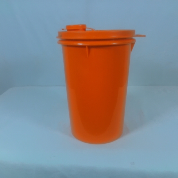 Durable Tupperware container. Bright orange color. Ideal for kitchen storage.