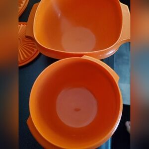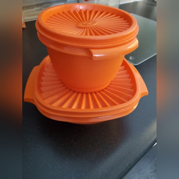Brighten up your kitchen with this vibrant orange storage container set. Perfect for keeping your food fresh and organized.