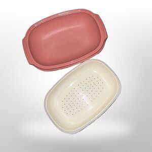 Tupperware Oval, PINK, covered steamer vegetable, rice steamer colander