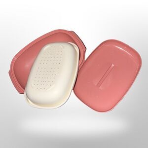 Vintage Tupperware Oval, PINK, container, covered, vegetable, rice, steamer, colander, (3 piece set)