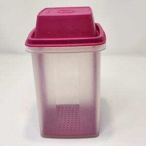 Tupperware 1330-18 Pick A Deli hot pink and clear pickle keeper, square container with lid and strainer, 3 piece complete set.