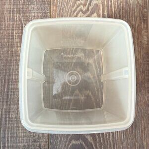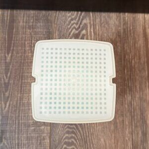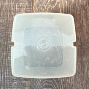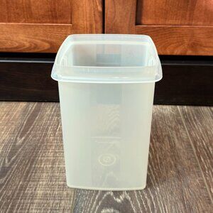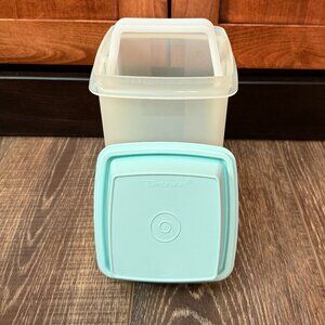 Tupperware Pick-A-Deli Pickle Container. Sheer with a mint green lid and sheer insert. Measures 4 ½” across and 8 ½” tall. Container is number 1560-7, the lid is number 1562-4 and the insert is number 1561-6. No major flaws, very clean, odor free, and seals completely. In great used condition. Please see photos.
