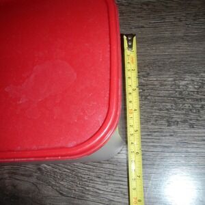 Keywords: Tupperware, food storage, container, red lid, rectangular, kitchen, pantry, leftovers, meal prep, plastic container, 2 liter, vintage tupperware, retro kitchen, food container, organization