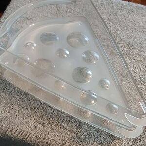 Tupperware stackable pizza keeper for 2 slices. Made of plastic and acrylic designed to store and reheat large pizza slices. 2 bases and 1 lid.