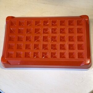 Tupperware Reusable Marinader Container Rectangular Red Grid Design Lid