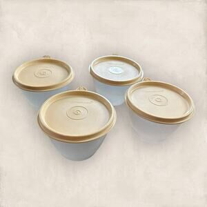 Tupperware Round Storage Container Sheer Tan Lid Vintage Set of 4