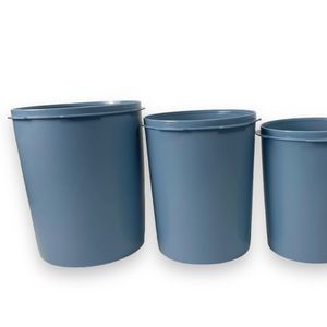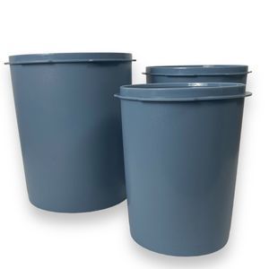 Keywords: Tupperware, Servalier, Canisters, Set of 3, Blue, Nesting, Storage Containers, Vintage, Retro, Kitchen Storage, Pantry Organization, Food Storage, Plastic Containers