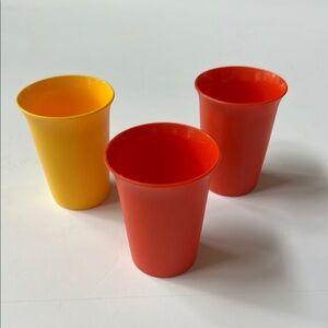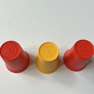 Tupperware Vintage Kids Tumblers Juice Bell Cups. Set of 3: 2 Orange-red, 1 yellow