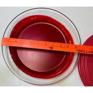 Elevate your serving experience with this Tupperware Sheerly Elegant round platter in a vibrant red and clear color scheme. Despite being used and showing minor scratches, it maintains a good used condition, complete with the seal intact. With a diameter of 10 inches, this platter offers ample space for presenting your favorite dishes with style and functionality. Whether you're hosting a gathering or simply enhancing your everyday meals, this Tupperware platter adds a touch of elegance to your table setting while ensuring practicality and durability.