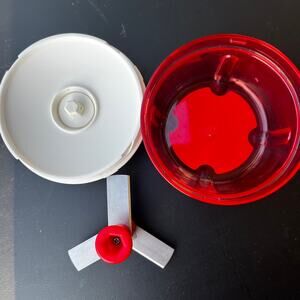 Tupperware food chopper. Small size that is great for travel, small chopping items or even for making baby food. Red and white. Dishwasher safe. In gently used condition.