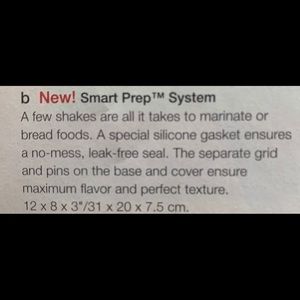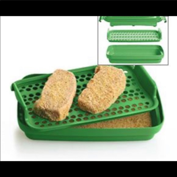 Still in plastic, sealed. “Prarie” is the color. Use for any meat, for marinate or dry coating-excess falls to the bottom, hands stay clean! A Must-Have for meals when you are entertaining with less time in the kitchen. More items to come. 5 pound bundle limit!
