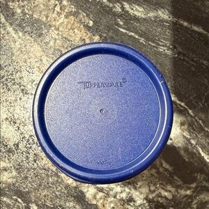 Keep your kitchen organized with this Tupperware spaghetti storage container featuring a blue lid. Perfect for storing pasta or snacks.
