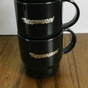 Vintage Set of 2 Shiny Black With Silver "Tupperware" Logo mugs Approx: 3.5' tall and hold approx 9 oz. Item is brand new never used.