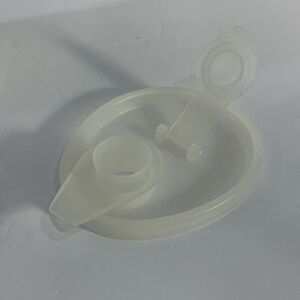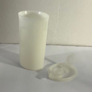 Vintage Tupperware Sweet Syrup Pitcher. The lid has a flip open with pouring scoop. Lids fit snug, no stains, very good condition