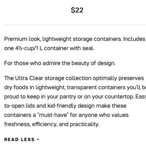 🚨Tupperware Ultra Clear 4 1/2 Cup/ 1 L Container