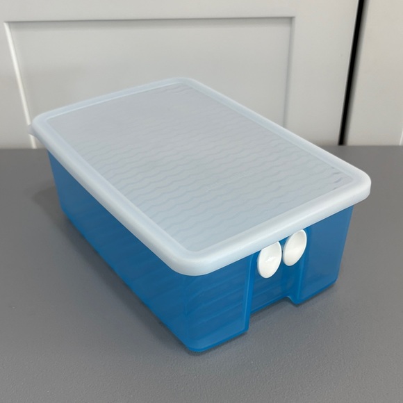 Tupperware vegetable container in blue