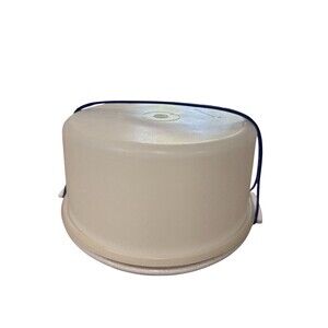 Tupperware Vintage 12" Round Cake Carrier Holder Blue Handle Clear White Lid EUC