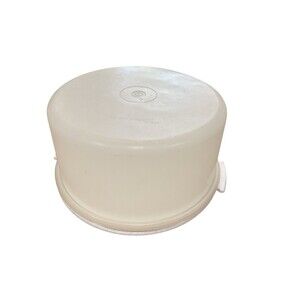 The Tupperware Vintage 12" Round Cake Carrier Holder with a blue handle and clear white lid is a classic piece for all occasions. Made of durable plastic, this standard-sized cake carrier features a solid blue pattern and a round shape, perfect for transporting and storing cakes. With a diameter of 9 inches and a depth of 7 inches, this vintage Tupperware item is a must-have for collectors and kitchen enthusiasts alike. The set includes one cake carrier with a lid, making it a practical and stylish addition to any baking accessories collection.