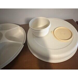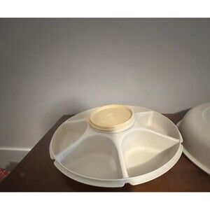 Tupperware Vintage 13" Divided Veggie Tray 1665-3, Serving Bowl Lid 1666-3