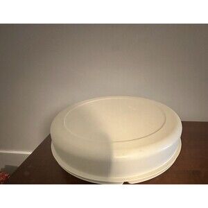 The Tupperware Vintage 13" Divided Veggie Tray 1665-3 is a retro style serving bowl lid made of plastic in a beige color. With a round shape and seven slots, this vintage Tupperware piece is perfect for organizing and storing vegetables or other snacks in your kitchen. The 13" size and 4" height make it a convenient and stylish addition to your kitchen storage and organization needs.