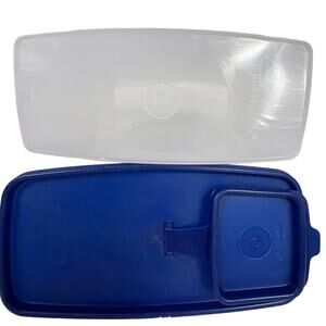 Vintage Tupperware Store N Pour pantry dry goods storage container canister with square blue flip top pour all lid seal Frosted container and blue lid. 13 cup capacity. Due to light & screen variations, colors may vary slightly from the images