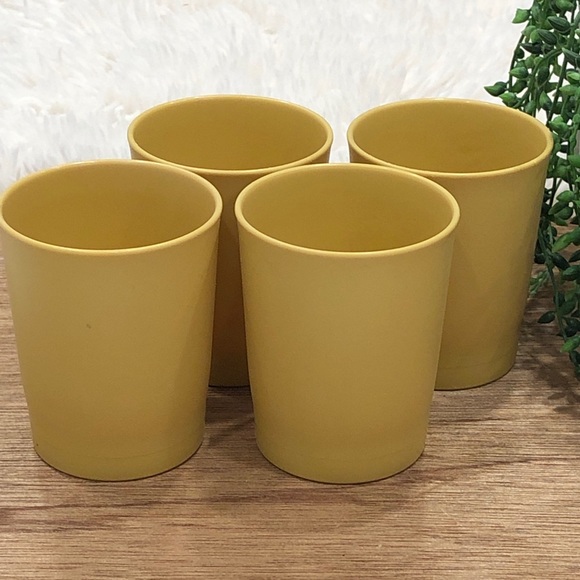 A set of 4, goldenrod Tupperware glasses, 3.25”H, light scratches on inside.