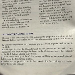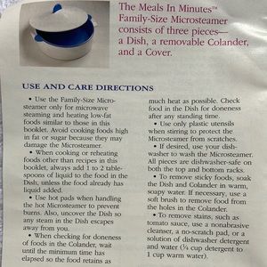 Vintage 1995 steamer. Never used just sat in cabinet. For use in micro. Dish washer safe. Use and care info not included found info on internet