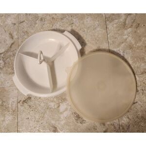 Tupperware, vintage Suzette white divided serving platter with lid and handle