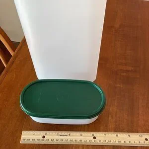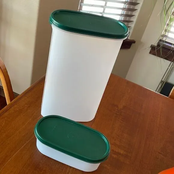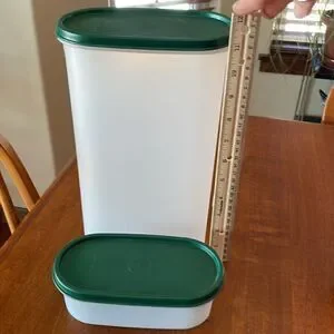 EUC. Tupperware Modular Mates 2 Piece Set. Tall one is 12 1/4 Cups, Small one is 2 cups. Sold as set. Both have Dark Green Lids