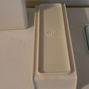 Pre-owned in good condition. The container is approximately 9.5 inches and 3 inches wide. The container contains a tray that fits inside the container.