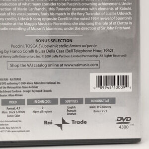 Turandot (DVD, 2004) 1958 Opera Performance Classic Franco Corelli NEW SEALED Giacomo Puccini Romance Royalty