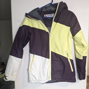 Great condition Women's Size XS (Great for teens or small women) Turbine Boardwear Ski jacket, cute purple/yellow/ white color with a grey interior. Get a great deal before ski season starts!
