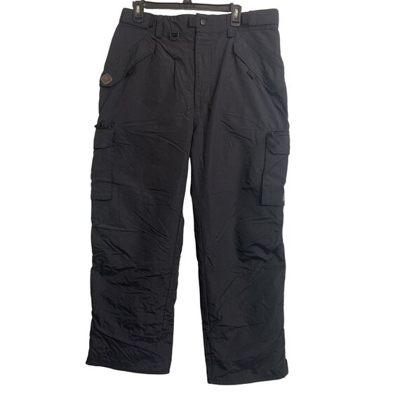 Stay warm and comfortable with these versatile, black outdoor pants, perfect for winter snowboarding and skiing. Featuring adjustable waist, zip and Velcro closures, and ample storage with six pockets.