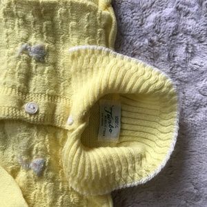 Sweater: Button down knit. White flower detail on front. 25” wrist to wrist across, 9.25” button down length, 9.25” across the Body
