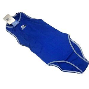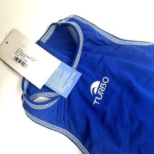 Turbo Comfort Girls Waterpolo Suit Size 05 Blue w/ White Stitching Back Zip NWT
