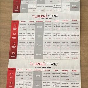 Turbo Fire is an advanced cardio conditioning program designed to ignite your fitness journey. This comprehensive workout system features high-intensity exercises that maximize calorie burn and improve endurance. There are 11 discs. The program includes detailed workout guides and routines for optimal results.