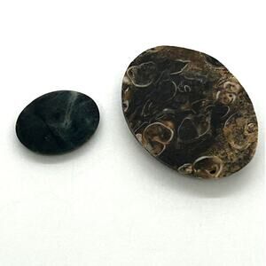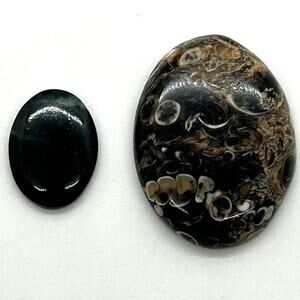 Turitella And Black Agate Cabochons For Jewelry Making Lot of 2