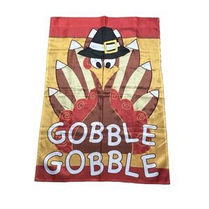 Turkey Gobble Gobble THANKSGIVING Holiday Style Flag - Harvest Fall Nylon 40x28 good preowned condition